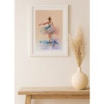 تابلو آبرنگ بالرین رنگی یک نقاشی آبرنگی با فضایی آرامشبخش. ترکیبی هنرمندانه از رنگهای ملایم و حس رهایی، مناسب برای دکوراسیون مینیمال و کلاسیک.